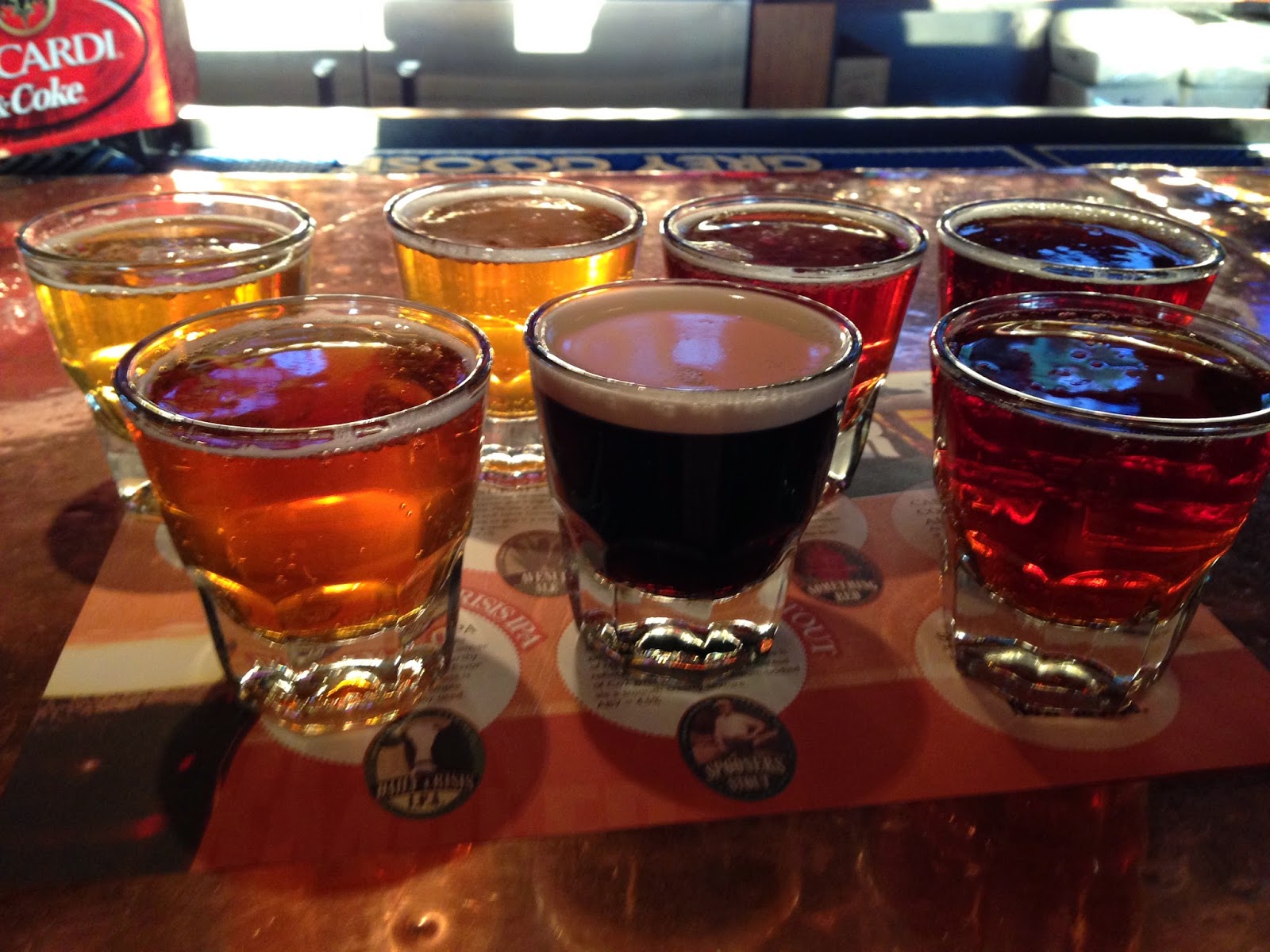 Lafayette Brewing boasts award winning beers brewed locally. Not exactly a unique stance for a local brewery, but well deserved in any case. The first thing I noticed was the sheer amount of different styles they had available during my visit. There's something about staring down at three sampler trays that makes you slowly push your car keys to the other side of the table and steel yourself for a long battle.